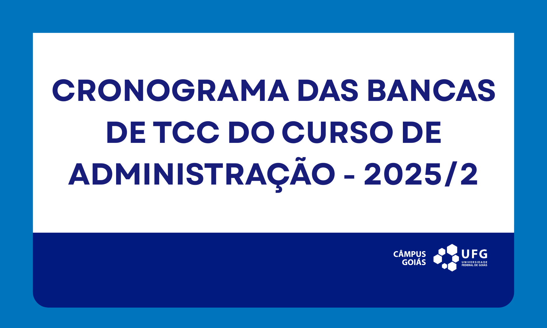 A comissão de TCC do Curso de Administração do Câmpus Goiás divulga o cronograma das defesas públicas de Trabalhos de Conclusão de Curso dos semestres letivos 2025/2 e 2025/4.