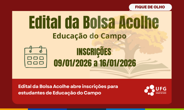 A Coordenação de Assuntos Estudantis (CAE) divulga o Edital da Bolsa Acolhe, destinado aos estudantes do curso de Educação do Campo. A iniciativa tem como objetivo contribuir para a permanência e o acolhimento dos discentes ao longo da graduação.