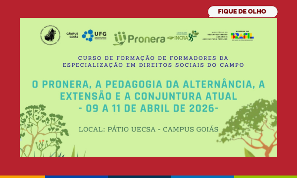 Entre os dias 9 e 11 de abril de 2026, será realizado o curso de formação de educadores intitulado “PRONERA, a Pedagogia da Alternância, a Extensão e a Conjuntura Atual”. A atividade é aberta à comunidade acadêmica e ao público externo, reunindo educadores, estudantes, pesquisadores e integrantes de movimentos sociais interessados na temática.